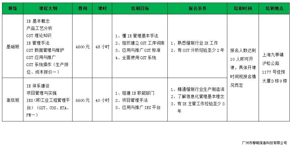 鉴于目前缝制行业IE方面的人才比较欠缺,以及众多行业从业人员希望有学习的机会,VSport-胜利将根据行业需求,携手创定公司,在上海组织开展IE相关培训班,欢迎大家报名!具体如下: