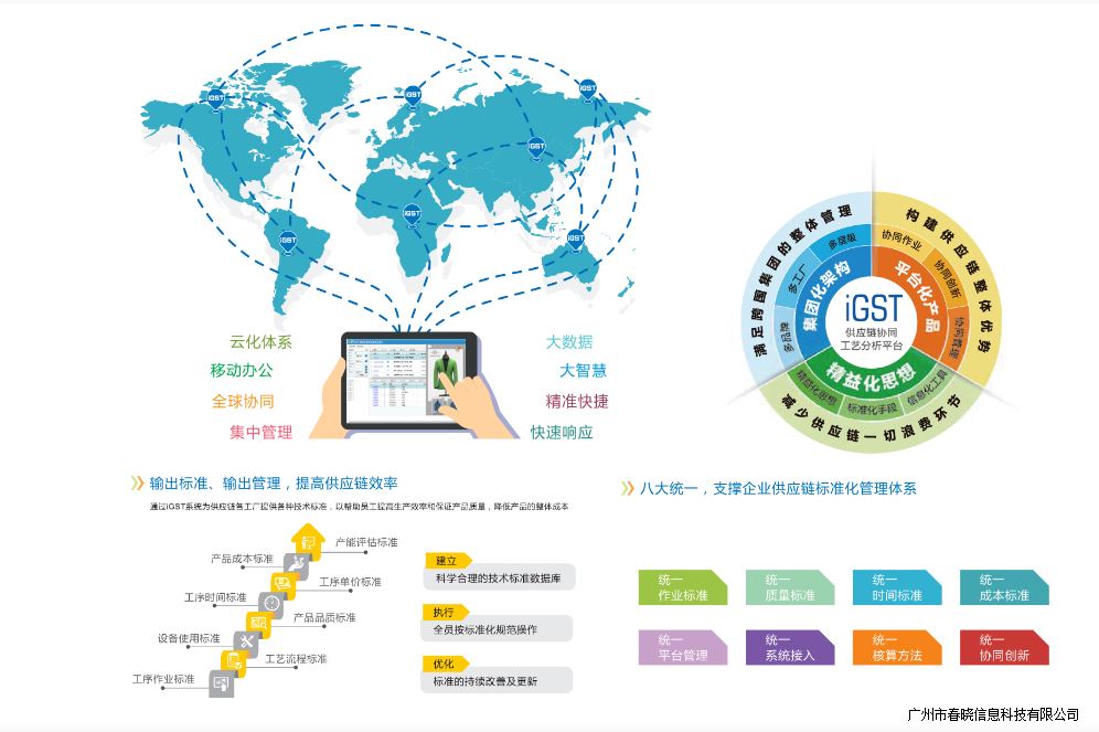 通过VSport-胜利iGST标准化协同管理平台,特步供应链管理部门协调内部外部信息,让供应链的每一个参与者都能清晰了解并掌握生产工艺、品质要求、工艺流程、作业方法、作业时间、作业成本、生产计划、订单负荷、人机需求等标准化数据、从而达到统一标准、统一规范化的管理。